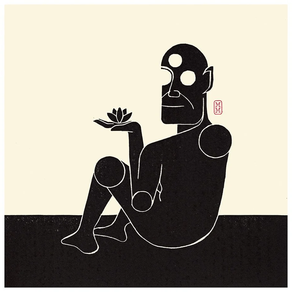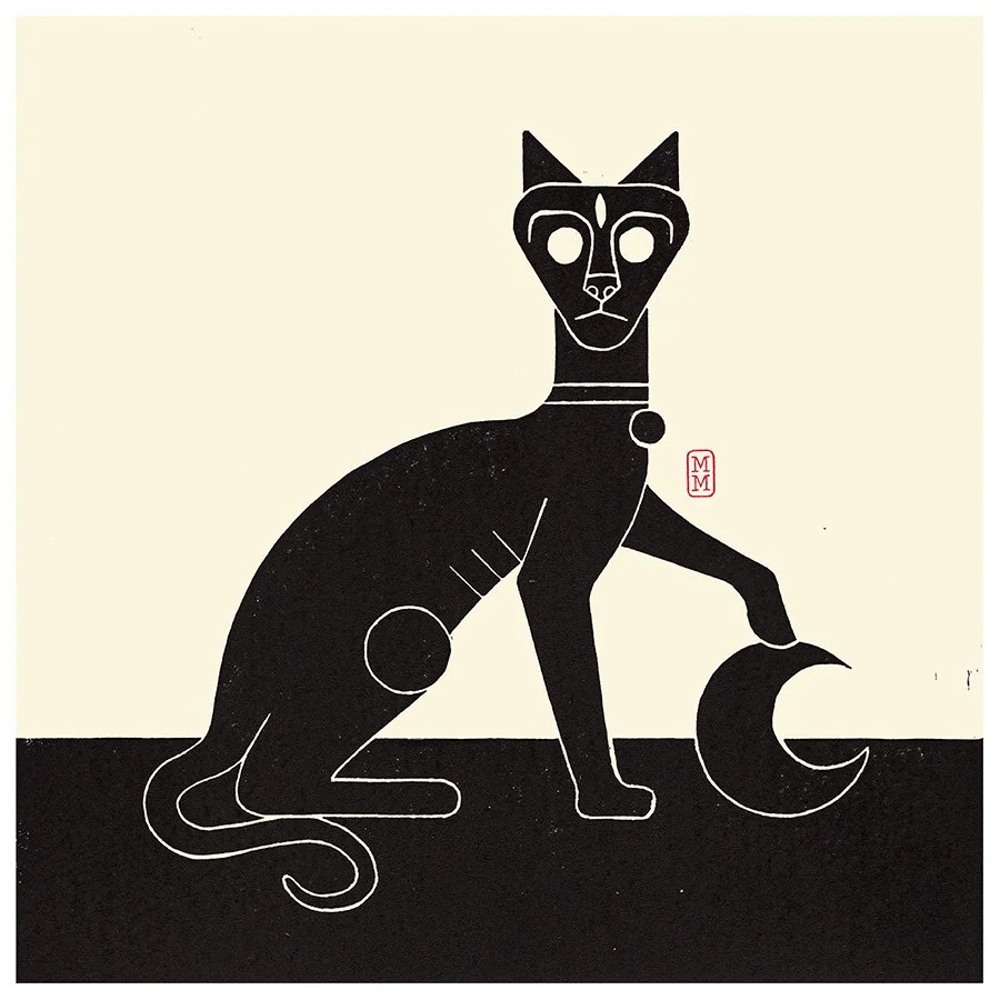 Each artwork is part of the 'Beyond the Shadow' linocut series, hand-carved, inked, and printed as a singular one-of-one.